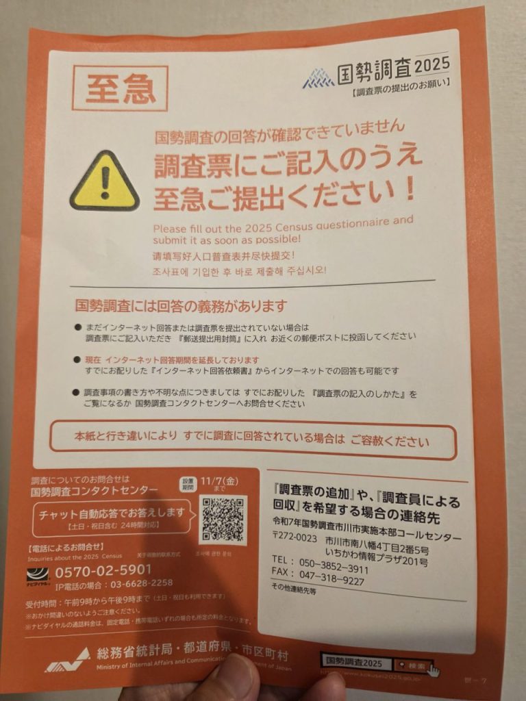 今回も含め、国勢調査員をずっとお手伝いして頂いている国勢調査員の皆様には本当に頭が下がります<(_ _)>