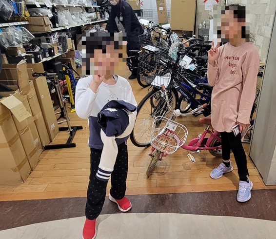 長男の誕生日プレゼント「自転車」が届いたとイオン市川妙典店自転車屋さんより連絡があり取りに来ました(^^♪